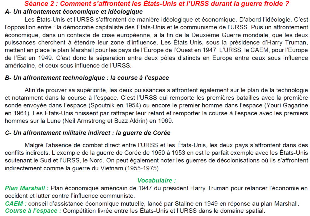 Séance 2 : Comment s’affrontent les États-Unis et l’URSS durant la guerre froide
