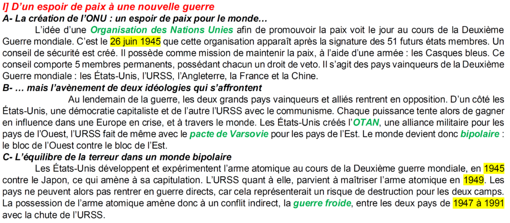 Chapitre 2 : Un monde bipolaire au temps de la guerre froide